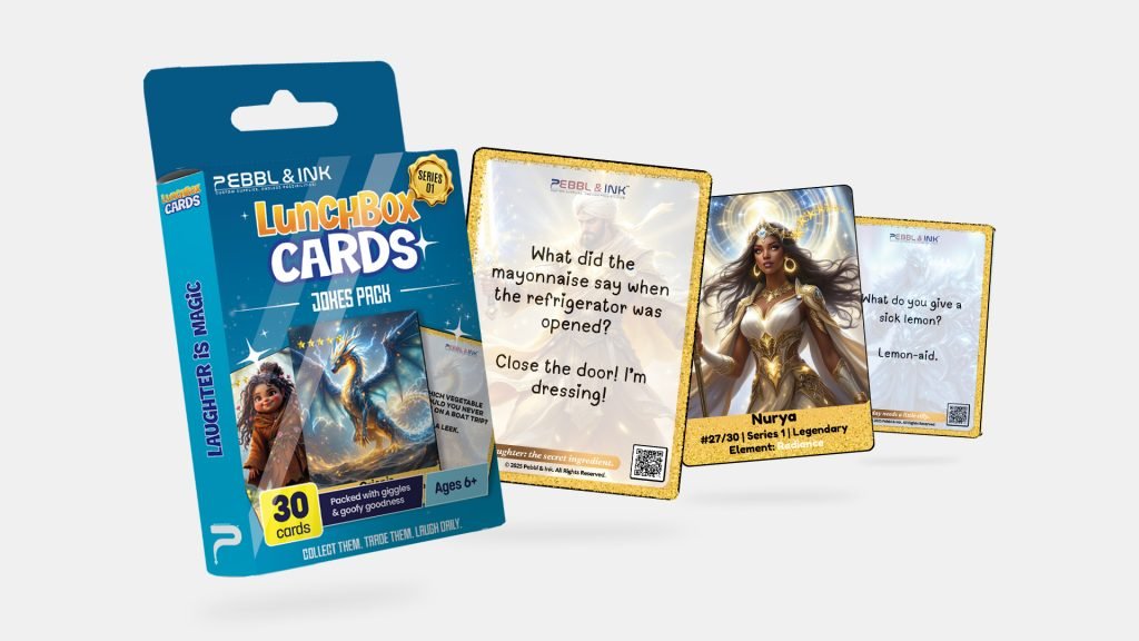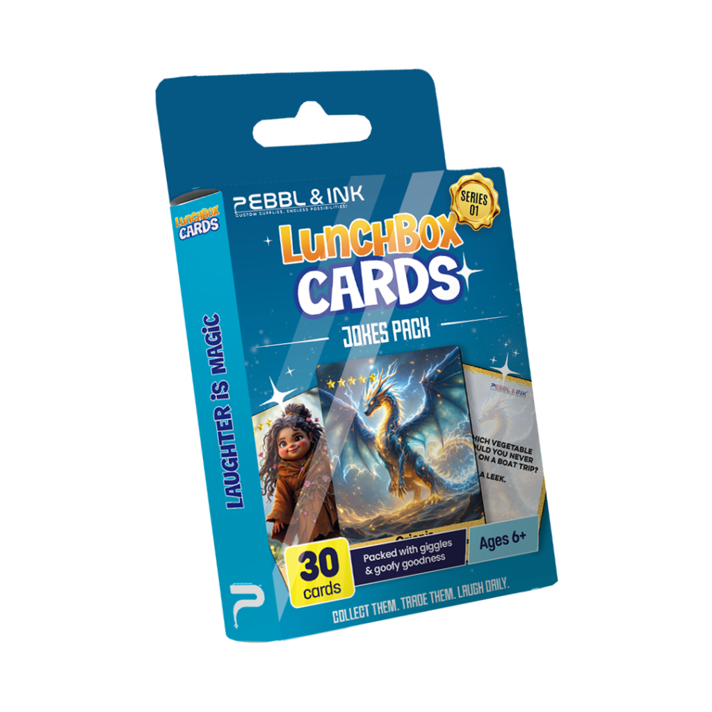 Light up lunchtime with 30 hilarious, kid-safe jokes your child can’t wait to share. Perfect for ages 6+, each card sparks laughter and connection at the lunch table. Bundle Deal: 3 Packs for $32.99 → Click here