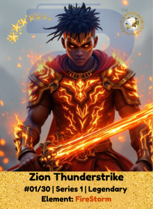 Forged in the heart of a firestorm, Zion is lightning wrapped in human form. Fierce, fearless, and faster than sound. His eyes spark with prophecy, and his sword burns with ancient flame. Wherever he walks, shadows tremble and courage rises. If you see flames in the sky, he’s already there.