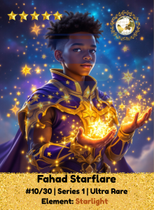 Born beneath a constellation only seen once a millennium, Fahad channels the cosmic fire of distant stars. Every spark he wields carries the wisdom of galaxies, lighting paths through the unknown. With a calm heart and celestial force, he leads others into greatness even when shadows fall.