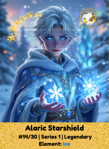 With frost-touched hair and a spirit as calm as snowfall, Alaric is a shield forged from ice and starlight. He speaks little, but his presence stills chaos. When danger strikes, he moves like a winter wind, swift, silent, and unstoppable, protecting others with unwavering grace.