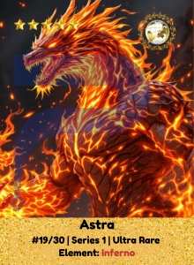 Astra blazes with primal fury, born of molten earth and unending flame. Wherever she charges, fear burns away and courage rises. She’s not just a leader—she’s a wildfire of purpose, lighting the path with heat, heart, and unstoppable will.