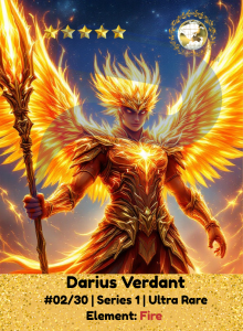 Darius speaks to fire like it’s family. His wings, born of embers and ash, whisper tales of warriors long vanished. He says little, but every step writes a legend. When danger comes close, Darius doesn’t warn. He erupts, leaving only scorched silence behind.