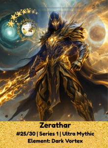 Zerathar emerges from the shadows of collapsed stars, drawing power from the unseen. He commands the void with calculated force, spinning darkness into motion and leading with quiet dominion that consumes doubt and fear alike.