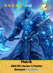 Forged in the deepest winter, Malrik guards with an icy calm that chills chaos itself. He speaks only through action, freezing threats in their tracks. With every step, he carves a path of honor in frost, steady and true.