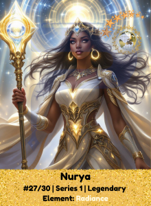 Nurya shines with the brilliance of dawn, her staff a beacon of hope. Her presence warms even the coldest hearts, guiding with compassion and resolve. In her light, truth is revealed, and every soul finds its reason to rise.