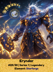 Born of starlight and steel, Eryndor is a living forge of celestial power. He speaks little, his silence echoing the depth of the cosmos. With every strike, he tempers fate itself, leaving behind a legacy of carved light and unshakable resolve.