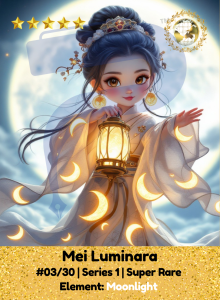 Mei walks between stars and dreams, her lantern glowing with moon magic passed down by sky spirits. It shows lost souls the way or traps those with dark hearts in illusions they cannot escape. She is calm as a night breeze, but even moonlight can burn.