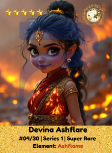 Born from volcanic ash and twilight flame, Devina dances between ruin and renewal. Her element, Ash Flame, holds the power to destroy and to heal, to burn away fear and spark resilience. With every step, she brings warmth to the broken and rises brighter when others fall.