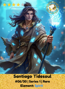 Calm as moonlit tides but fierce as a storm beneath, Santiago wields the element Spirit, the force of memory, will, and unseen power. He speaks with oceans, listens to whispers of ancestors, and commands the waters not just with might, but with heart. Where he walks, tides turn.