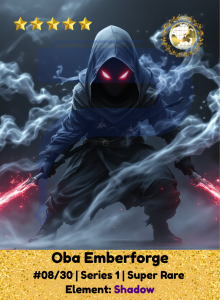Shrouded in smoke and myth, Oba walks the line between past and present. His element, Shadow, holds echoes of forgotten power, secrets, sorrow, and strength. He bends the darkness to his will, emerging only when it matters most. In silence, he is watching. In silence, he strikes.
