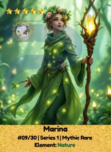 Marina speaks for the forests, flowers, and every living thing that grows. Her element, Nature, binds her to ancient roots and blooming futures. Gentle yet unbreakable, she calls vines to shield and winds to whisper. In her presence, the world breathes, and no harm goes unnoticed.